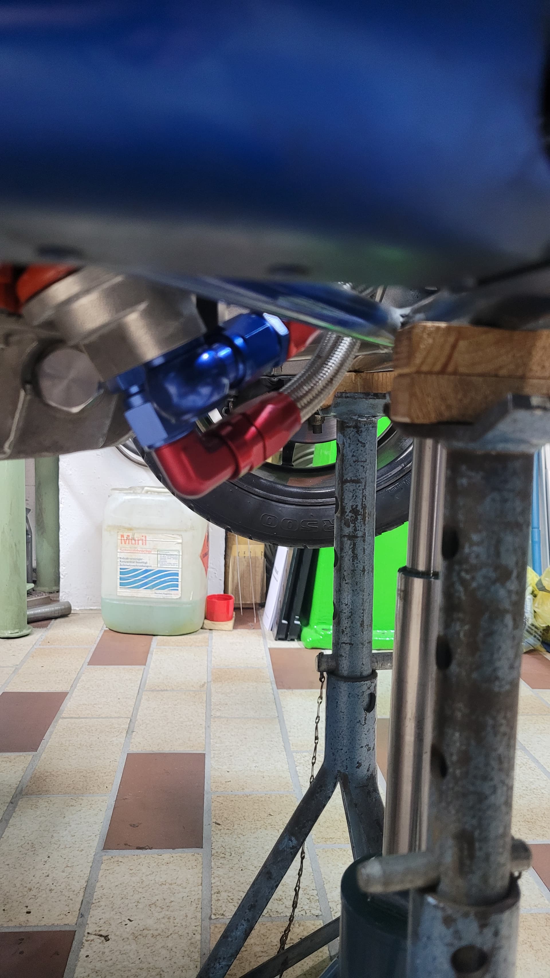 Diese Banjo Bolds werden oft bei Motorädern für Oelleitungen benutzt, ob bei deinem der Durchmesser groß genug ist? Von Setrab z.B. gibt es welche mit großem Durchmesser…