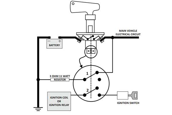 Die trennen eben auch die Stromversorung + zur Zündspule und am besten auch die Benzinpumpe, damit schaltet der Motor sicher ab. Um eventuelle Spannungsspitzen zu eliminieren, ist der Widerstand verbaut.