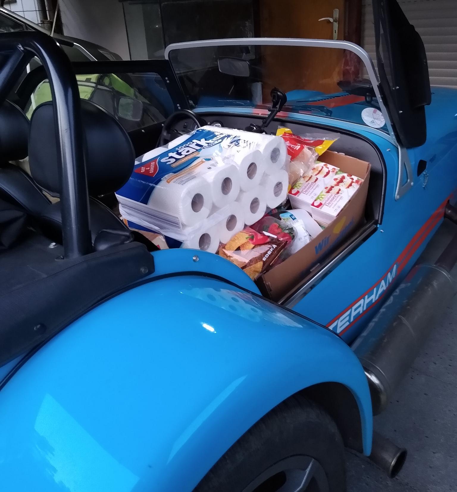 beladene Caterhams sehen immer lustig aus. Am Supermarkt ist das auch immer gut, wenn der Einkauf für eine 4-köpfige Familie drin ist.