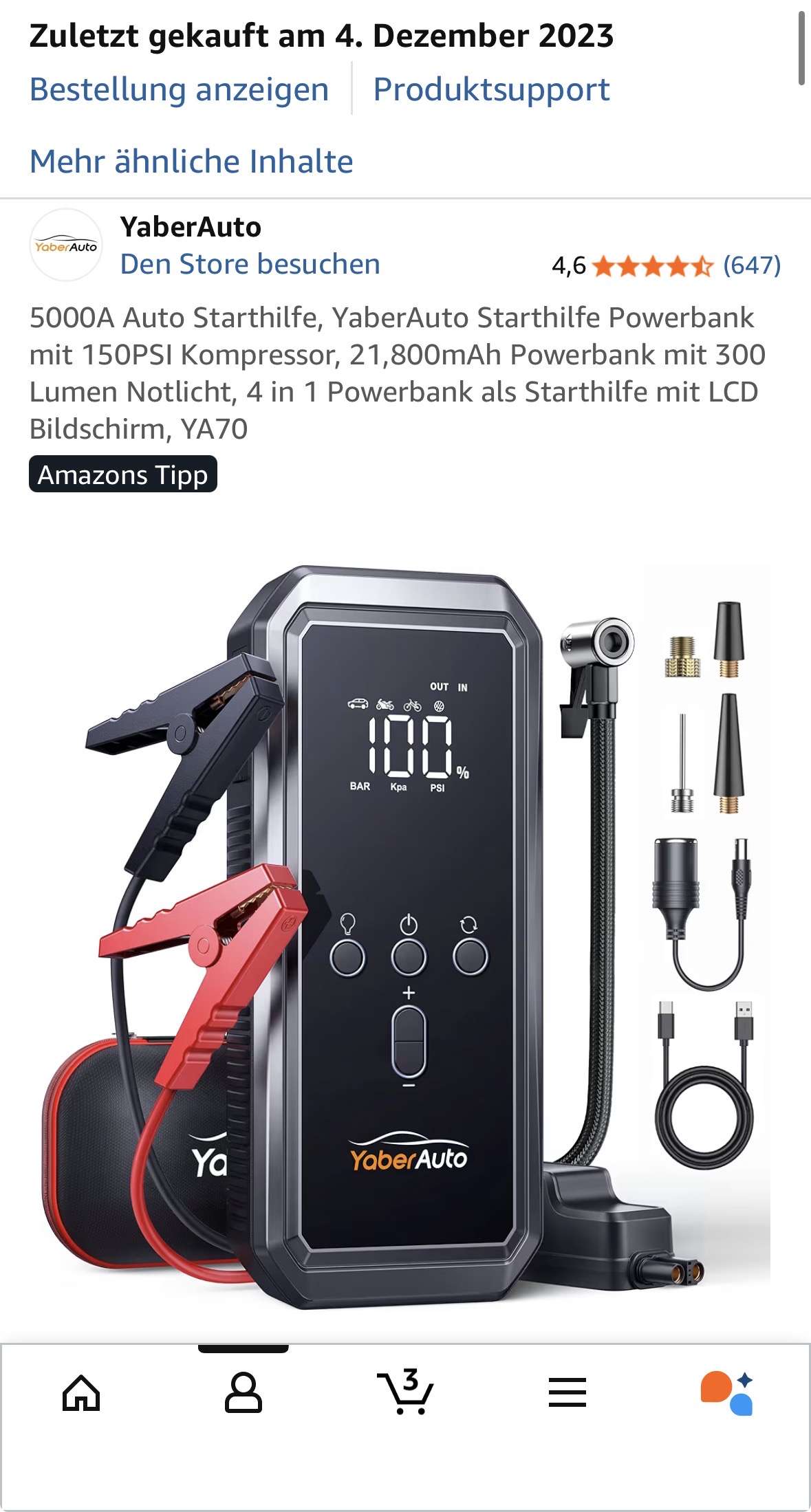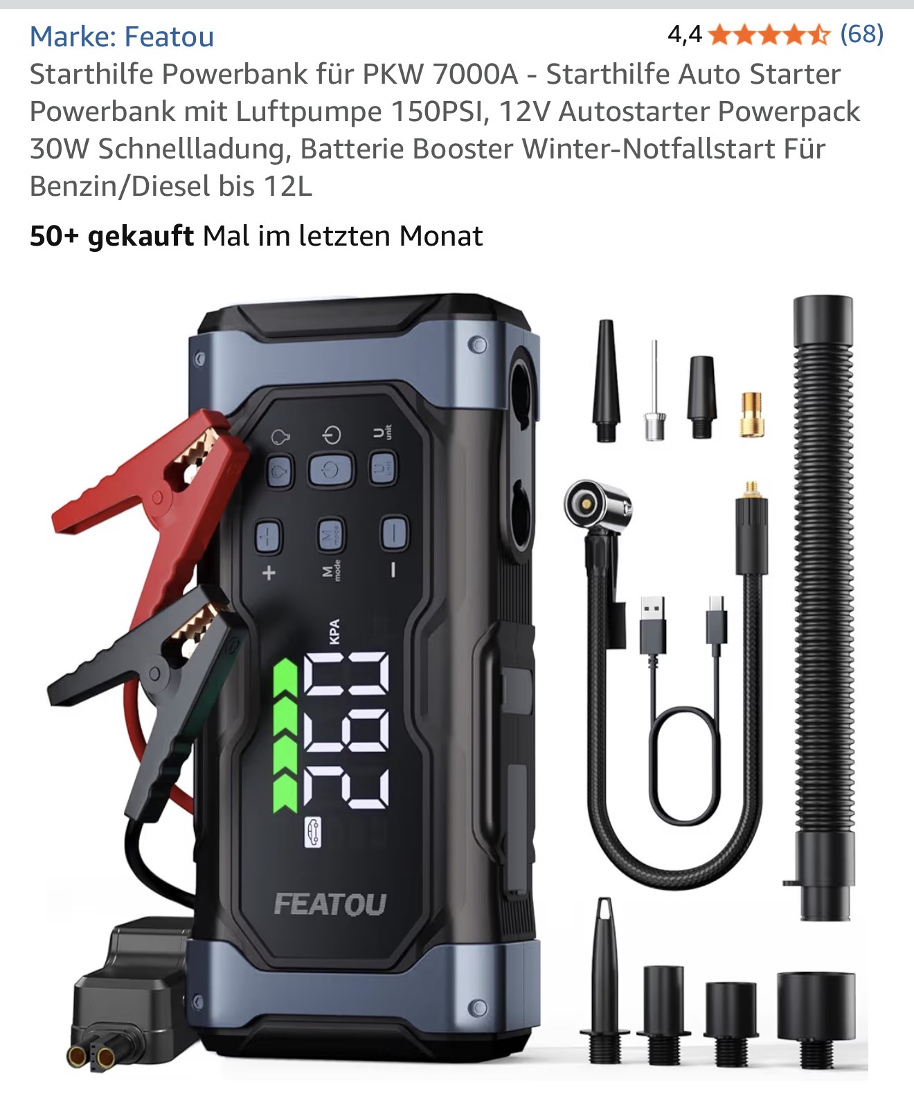 Ich habe auch eine Starthilfe Batterie von Yaber. Das Ding scheint es wohl nur noch in moderer Version zu geben, siehe Vorschlag von Robin. Meins ist schon Jahre in Betrieb und wird immer mal wieder genutzt. Bisher ohne Klagen. Würde ich auch sofort wieder kaufen.