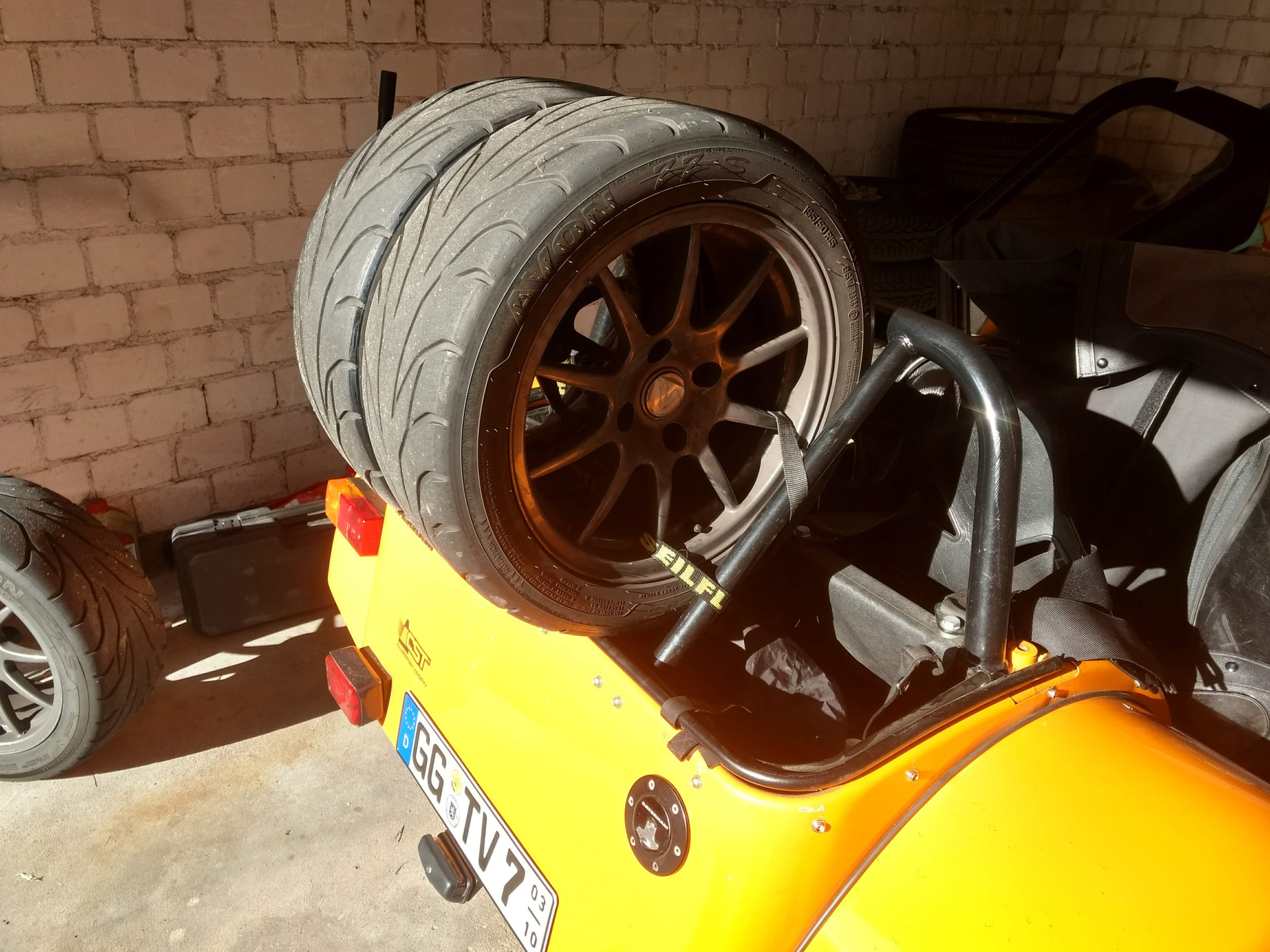 Ich wüsste aber nicht wie man die anderen 2 Reifen irgendwie verstaut bekommt, oder gehen die irgendwie (quer) in den Kofferraum. Theoretisch könnte man die irgendwie längs drauf packen.